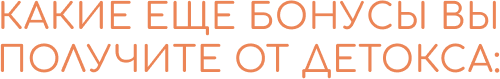 После Детокса обменные процессы восстановятся, пищеварительная система будет работать в полную силу. В таком режиме даже погрешности выходных дней пройдут без последствий, организм выдержит. Вы сохраните форму, а после сможете легко продолжить улучшать ее.