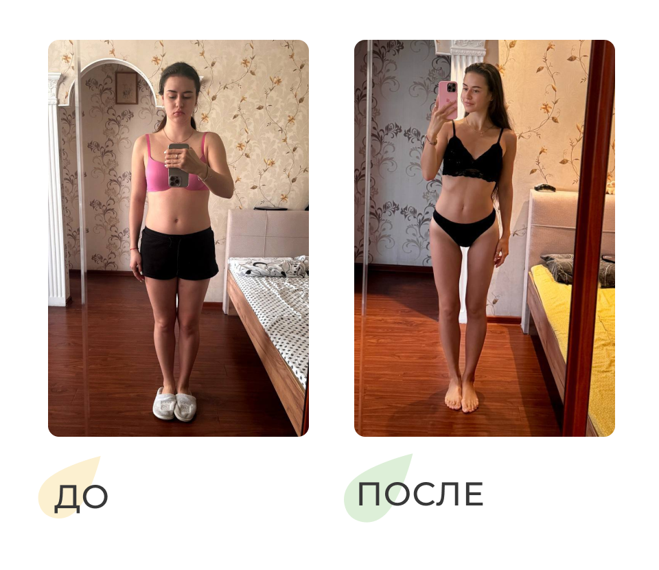 Это не пустые обещания, смотрите результаты участниц наших программ, и это без спорта — только правильные сочетания продуктов!